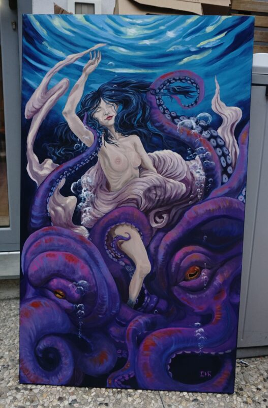 Dipingo con tecniche tradizionali e digitali, traggo ispirazione dalla memoria, dai sogni e dallo studio della cultura esoterica e spirituale. Nel mio immaginario artistico la bellezza è uno strumento di introspezione.